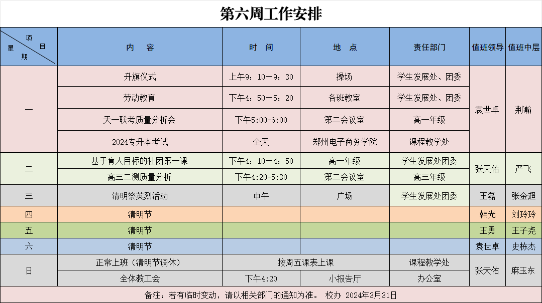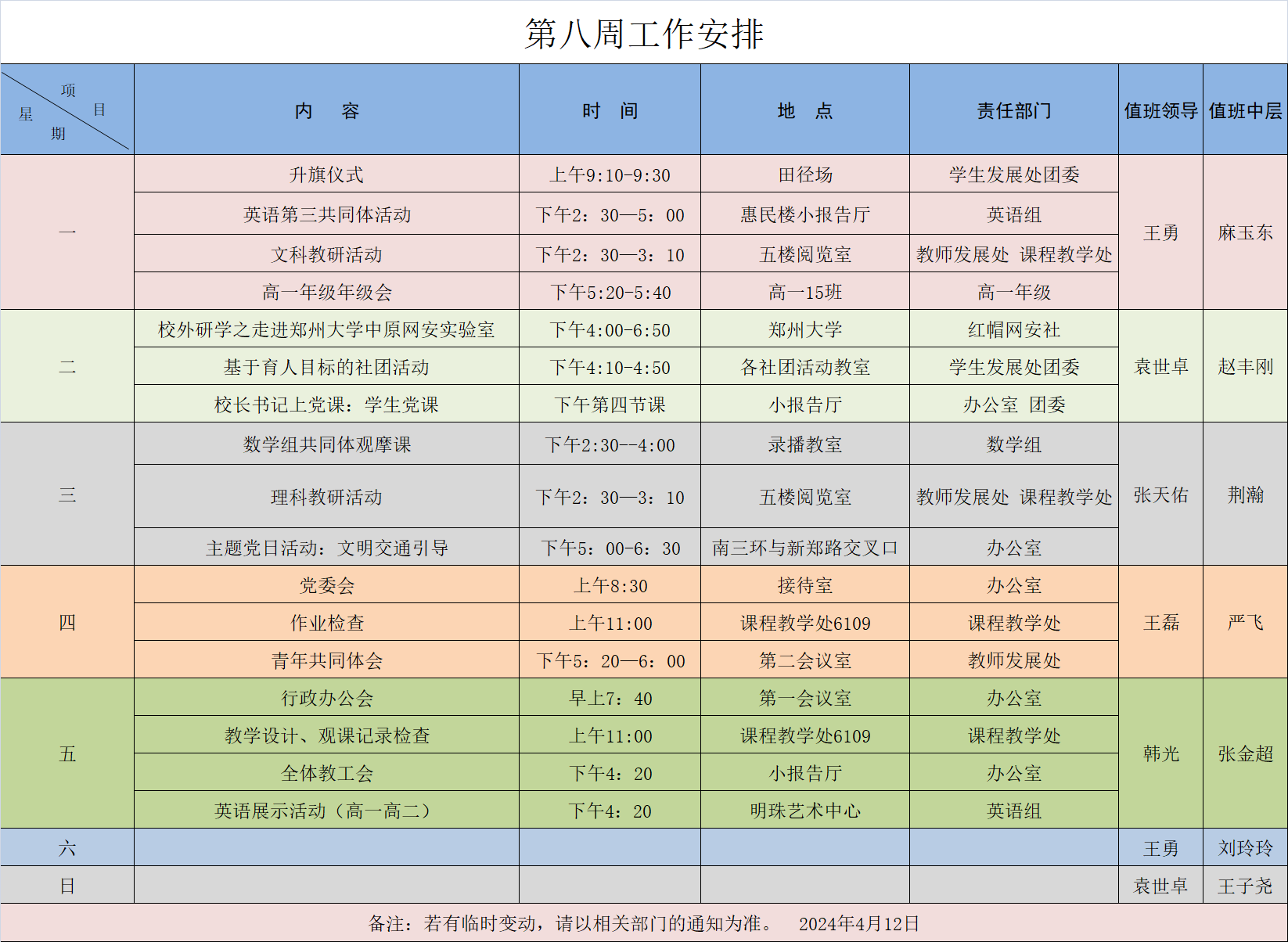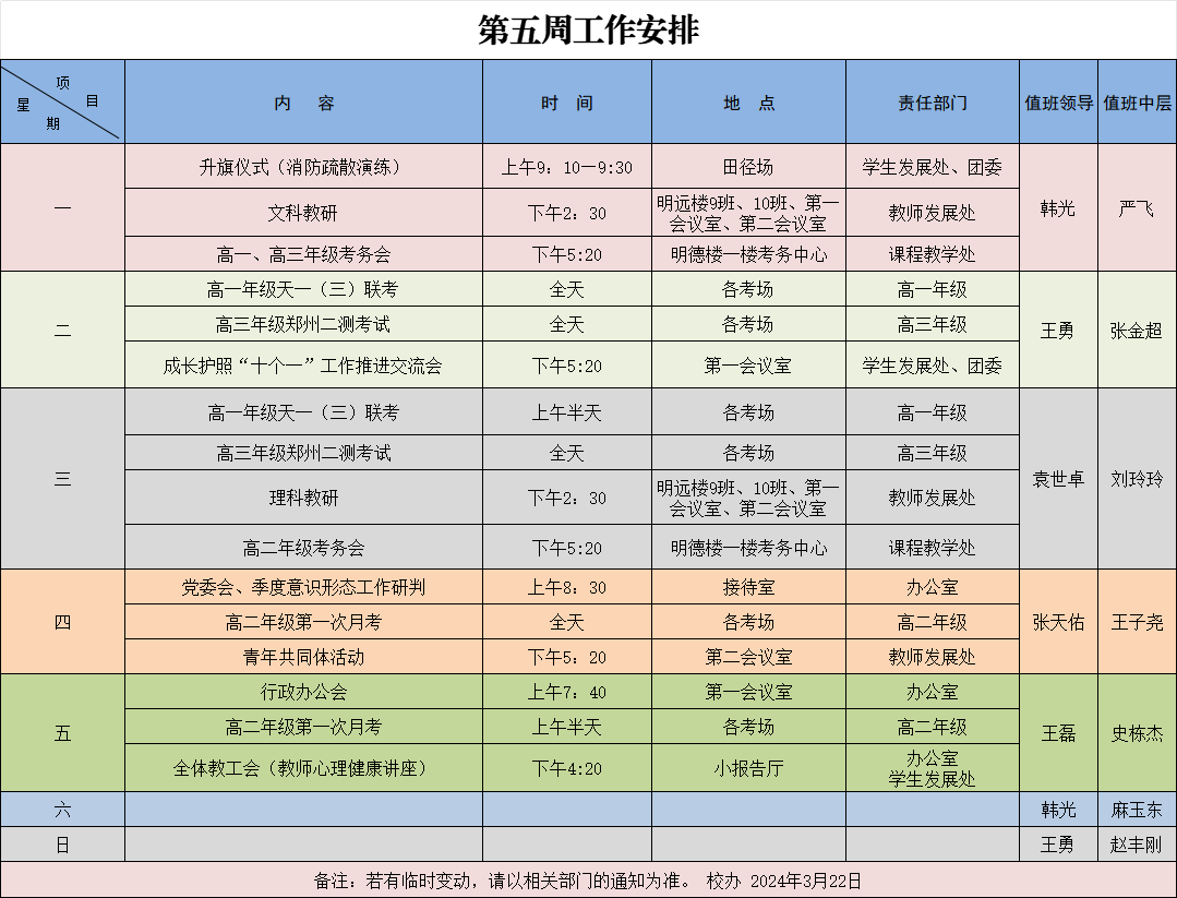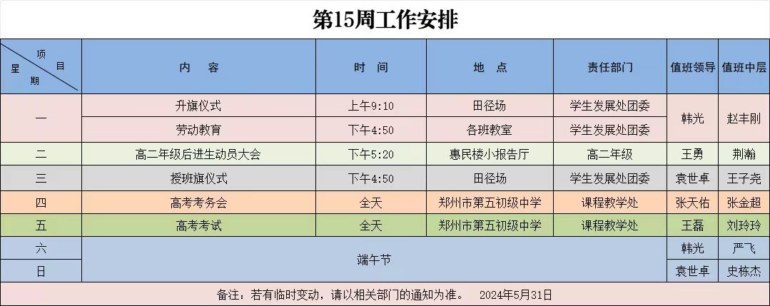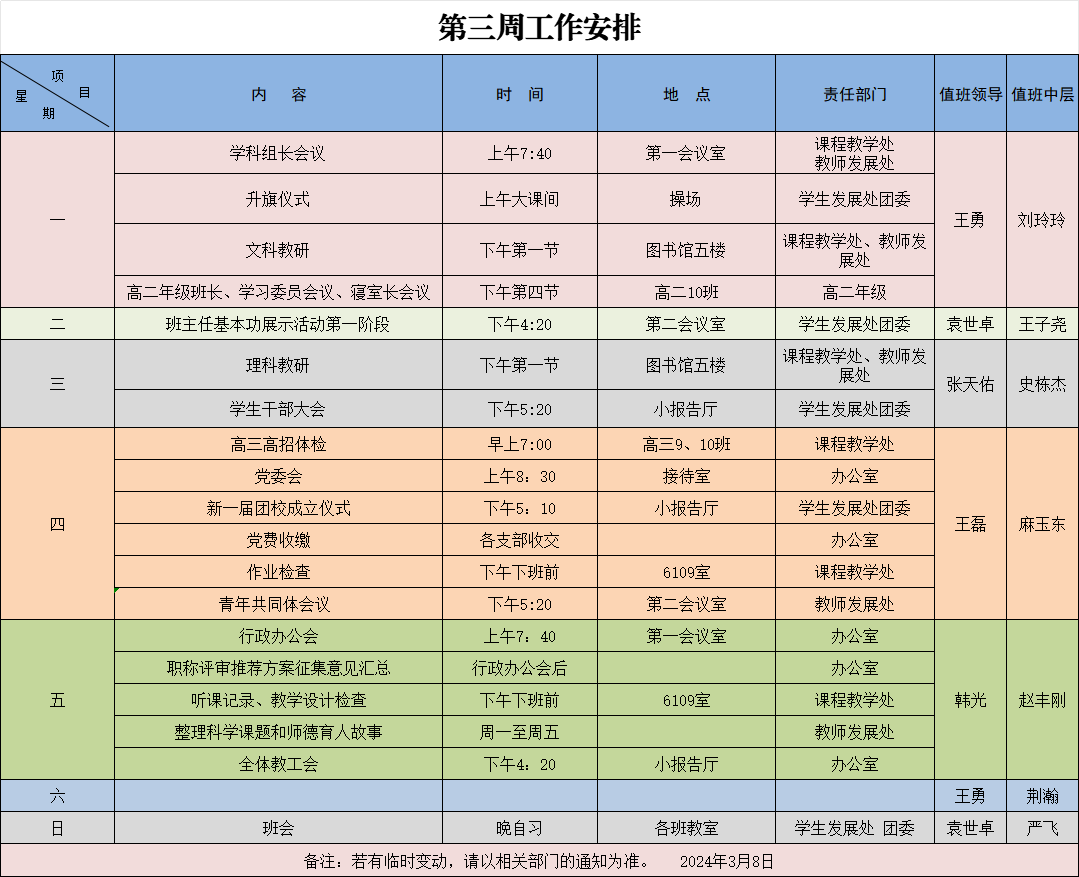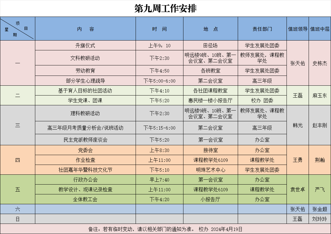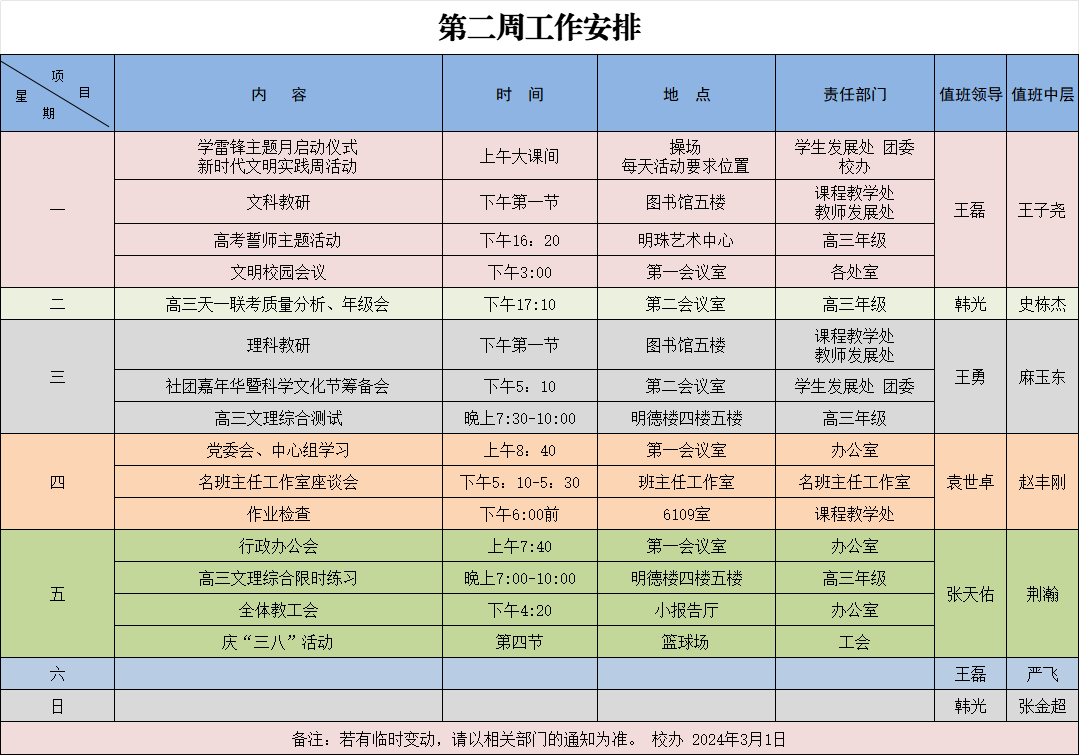 2024年周工作安排汇总