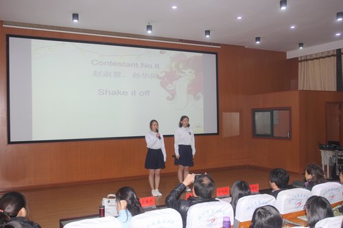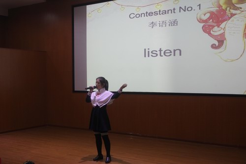现场参赛作品有“Listen”,“Proud of you”,“Because of you”,“I believe I can fly”,“All of me”,“Shake it off”等作品。最后,第二届冠军、现高三学生朱正作友情演唱。经过紧张、激烈的角逐,在评委老师认真公正打分后,分别评选出高一8班选手王雨萌、高二1班选手张义仁、高二4班选手洪晨轩、高一3班选手王若婷等4名同学获得季军三等奖,高二3班选手魏来、高一2班选手赵淑慧、孙华阳等3名同学获得亚军二等奖,高二1班选手李语涵同学获得冠军一等奖。